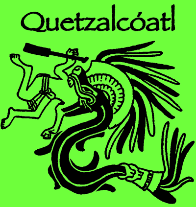 The Feathered Serpent iconography was widely used across Meso-America by Mayans, Aztecs, etc. In K'iche' Mayan "feathered-serpent" is pronounced "Kukulkan." Quetzalcoatl is more widely known especially since the national bird of Guatemala is the Quetzal bird, the bird is featured on Guatemala's flag, Birdette on "It's a Big Big World" on OPB is a Quetzal bird, and the teacher's name on "Dragon Tales" on OPB is Quetzal (Ashton watches a lot of OPB every morning so I get to hear all about it).